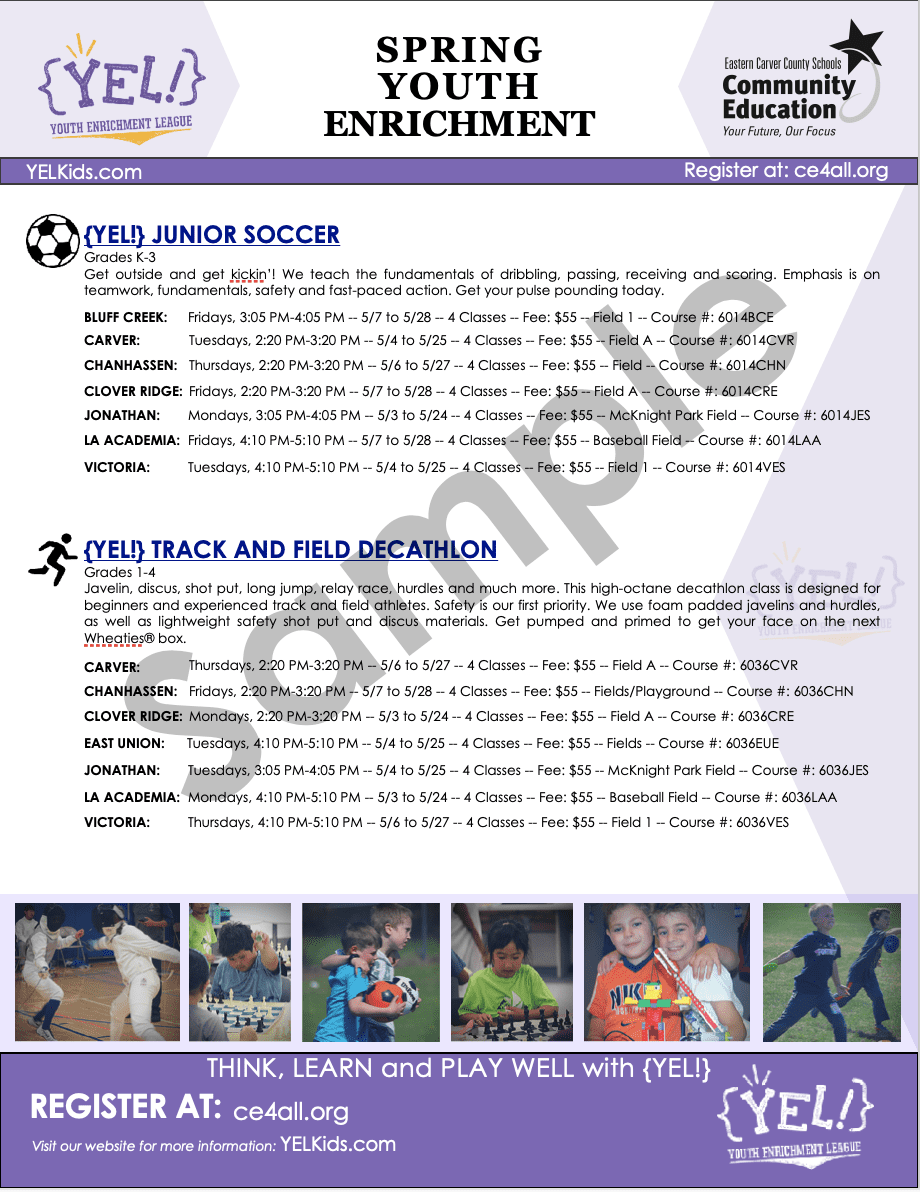 {YEL!} sends the school copies of the flyer. We can also email pdf versions of the flyer or work with PeachJar for electronic distribution. We will also email previous enrollees about upcoming sessions.